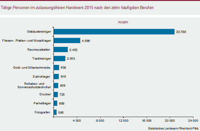 Weitere Informationen: www.statistik.rlp.de. Detaillierte Strukturdaten zum Handwerk liefert ein Statistischer Bericht, der als PDF-Datei (xxx kB) kostenlos heruntergeladen werden kann.