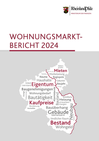 Im Auftrag des Finanzministeriums erstellt das Statistische Landesamt jährlich eine Publikation mit Basisindikatoren zum Wohnungsmarkt in Rheinland-Pfalz. Zur Nachfrageseite werden Bevölkerungsstruktur und Bevölkerungsbewegungen betrachtet, außerdem der Arbeitsmarkt und die Einkommenssituation. Zahlen zu Wohnungsbestand, Baugenehmigungen und Baufertigstellungen bilden die Angebotsseite ab. Außerdem enthält die Veröffentlichung Zahlen zu Neuvertragsmieten und Kaufpreisen für Eigentumswohnungen sowie Ein- und Zweifamilienhäuser.